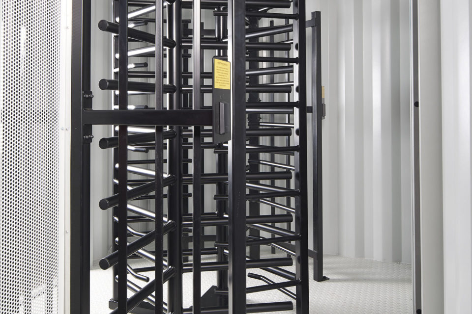 Die Drehkreuzanlage ist in einer speziell angefertigten, kompakten Einheit (3 x 2,4 m) untergebracht und lässt sich problemlos am Rand von Baustellen platzieren. Sie kann in Baustellenzäune integriert werden, um umfassende Sicherheit zu gewährleisten.